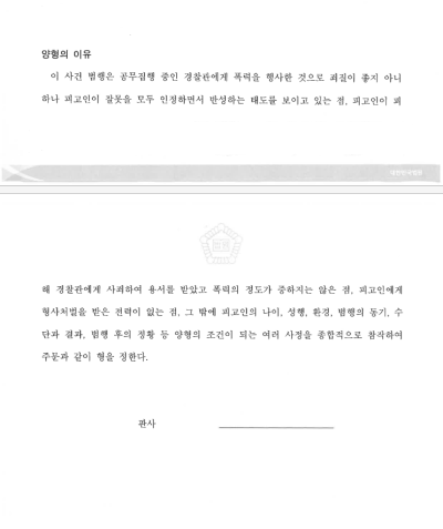 • 반성과 사죄: 자신의 잘못에 대해 전혀 변명하거나 부인하지 않고 깊이 뉘우치고 있으며 경찰관이 입은 피해에 대해 깊이 사죄